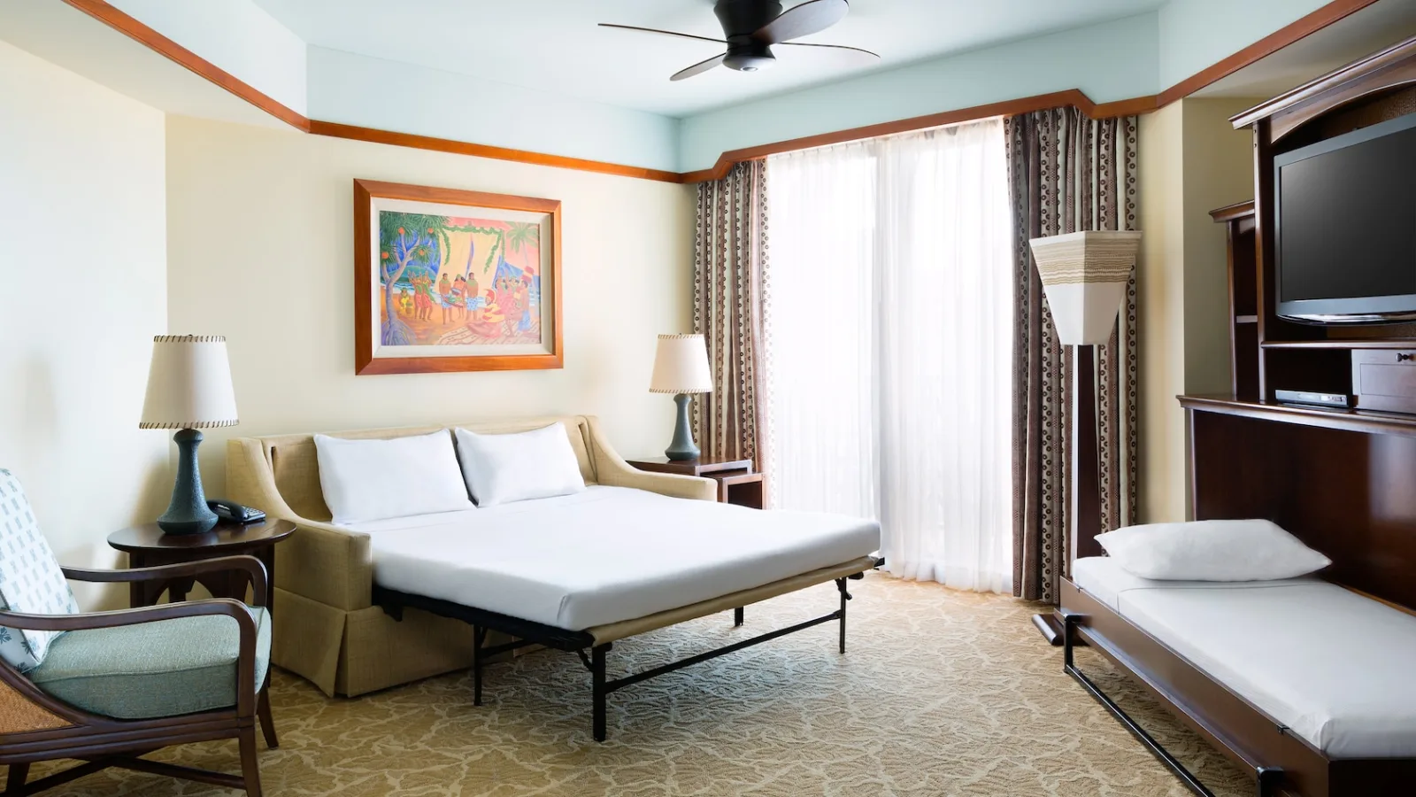 King/queen bed includes pullout sofas