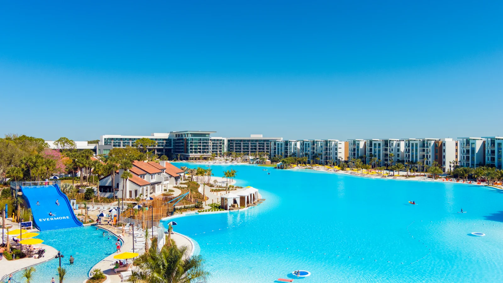 - The 8-acre man-made, swimmable Evermore lagoon is the star. It is not heated, but in cooler months you can still use it for water sports.
