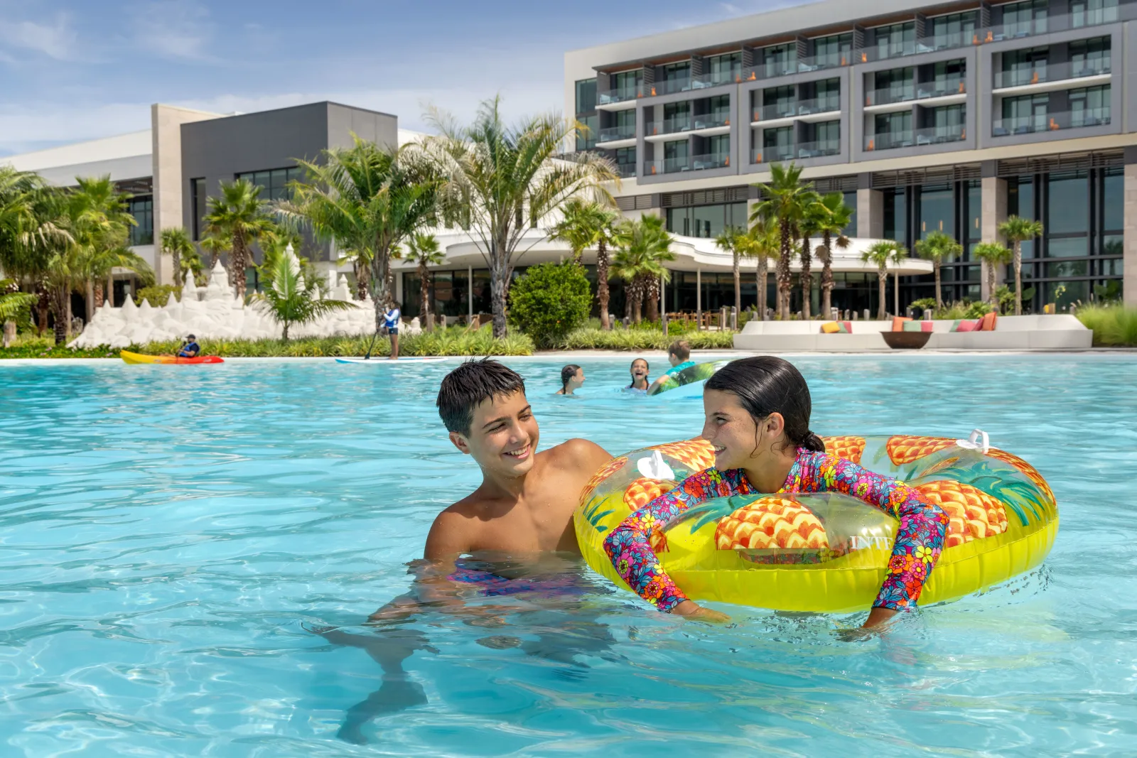 Large, new resort with a man-made lagoon for water sports, zero-entry pool, kids club, and a shuttle to Disney World.