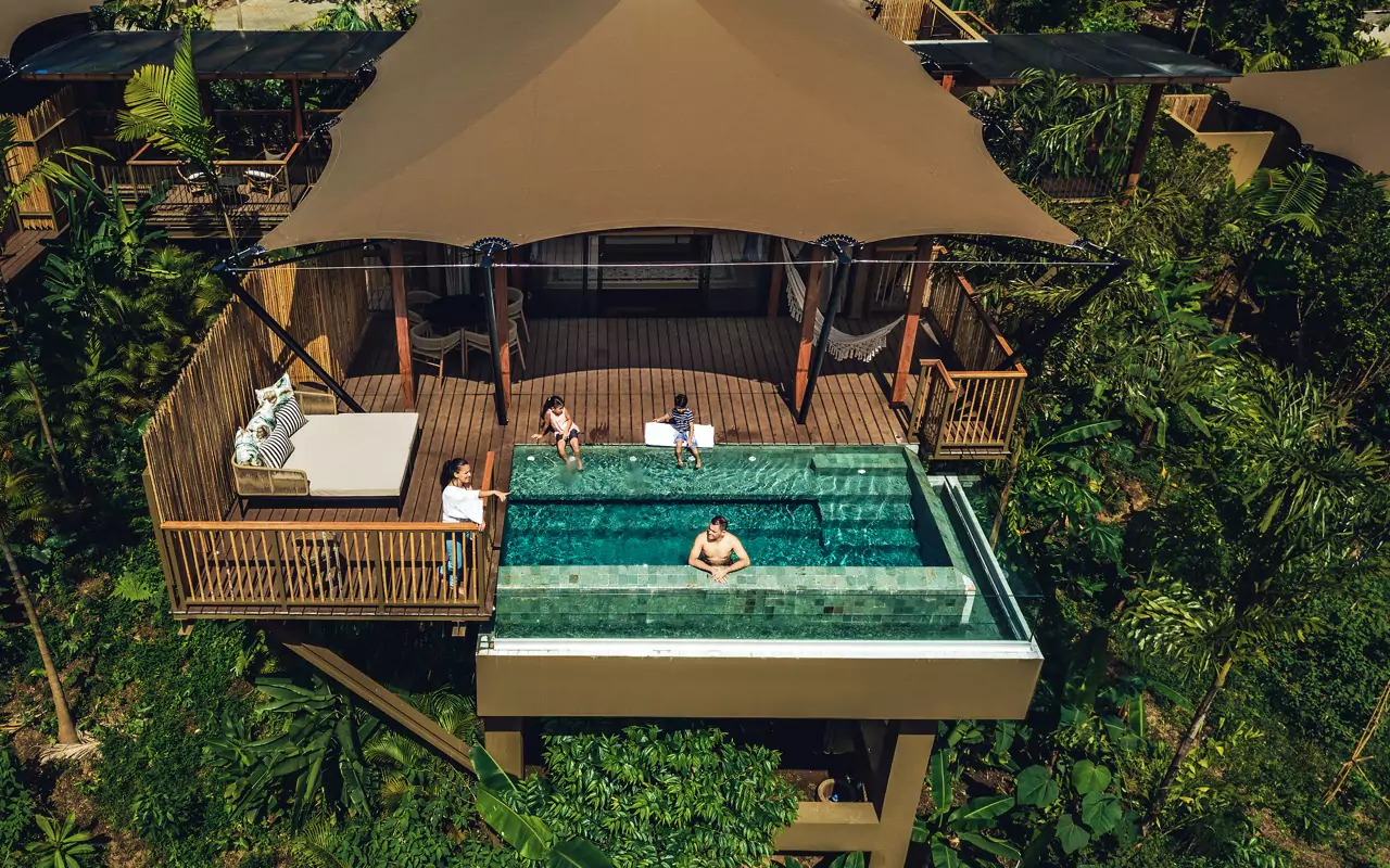 A magical eco-retreat offering luxurious tents, stellar service, jungle adventures, and private pools in Costa Rica’s Arena Volcano National Park.